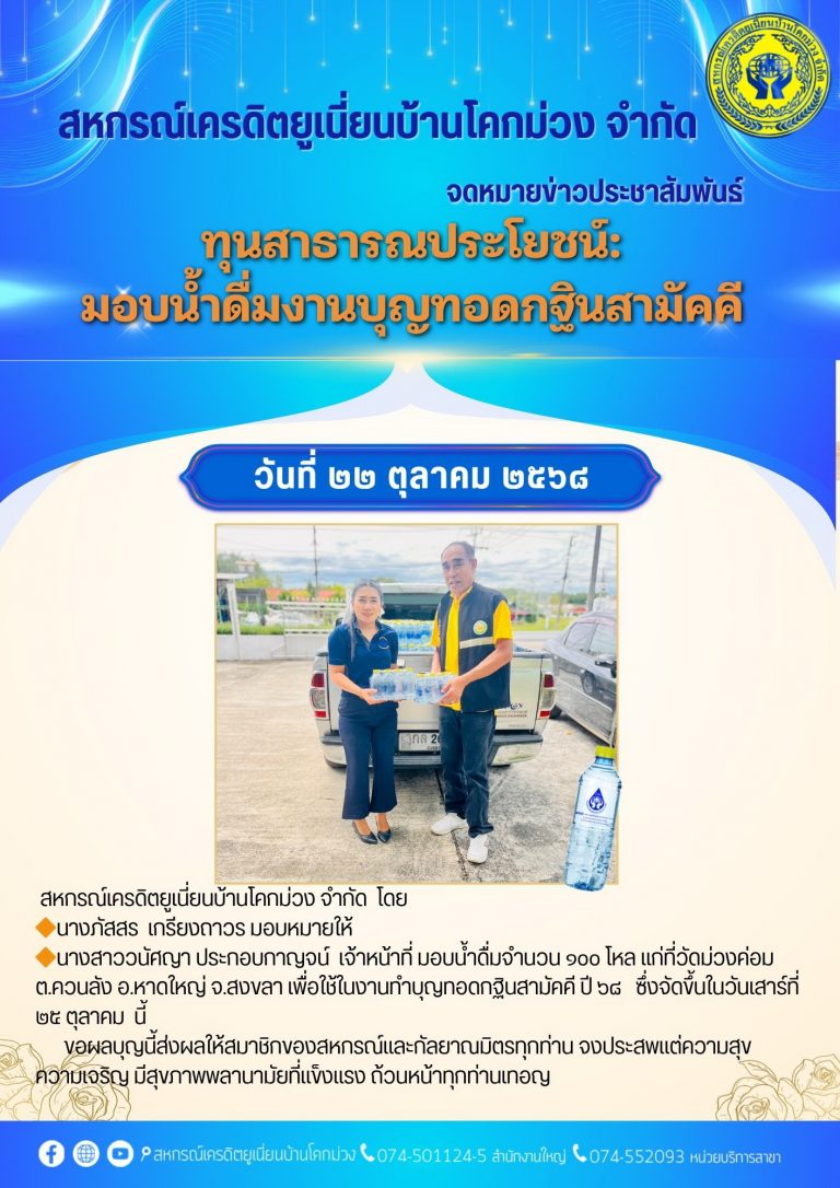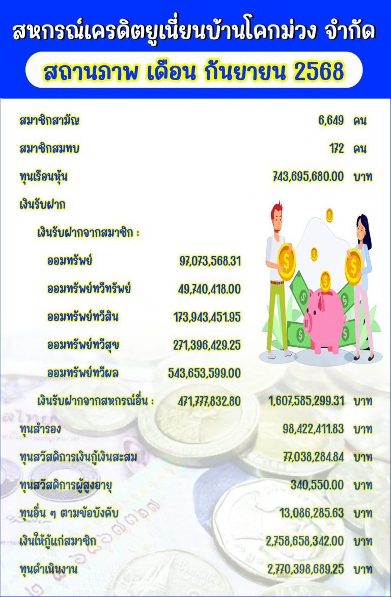 ประกาศ สหกรณ์เครดิตยูเนี่ยนบ้านโคกม่วง จำกัด (ให้ผู้ที่มีรายชื่อตามประกาศติดต่อขอรับเงินภายในวันที่ 10 พฤศจิกายน 2568)
