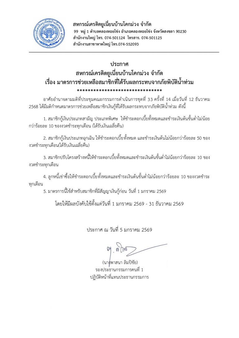 ขยายเวลาโครงการฟื้นฟูช่วยเหลือสมาชิกที่อยู่อาศัยได้รับผลกระทบจากอุทกภัย ปี 68 ไปจนถึงวันที่ 30 ธันวาคม 2568 นี้15 ธันวาคม 256815 ธันวาคม 2025
