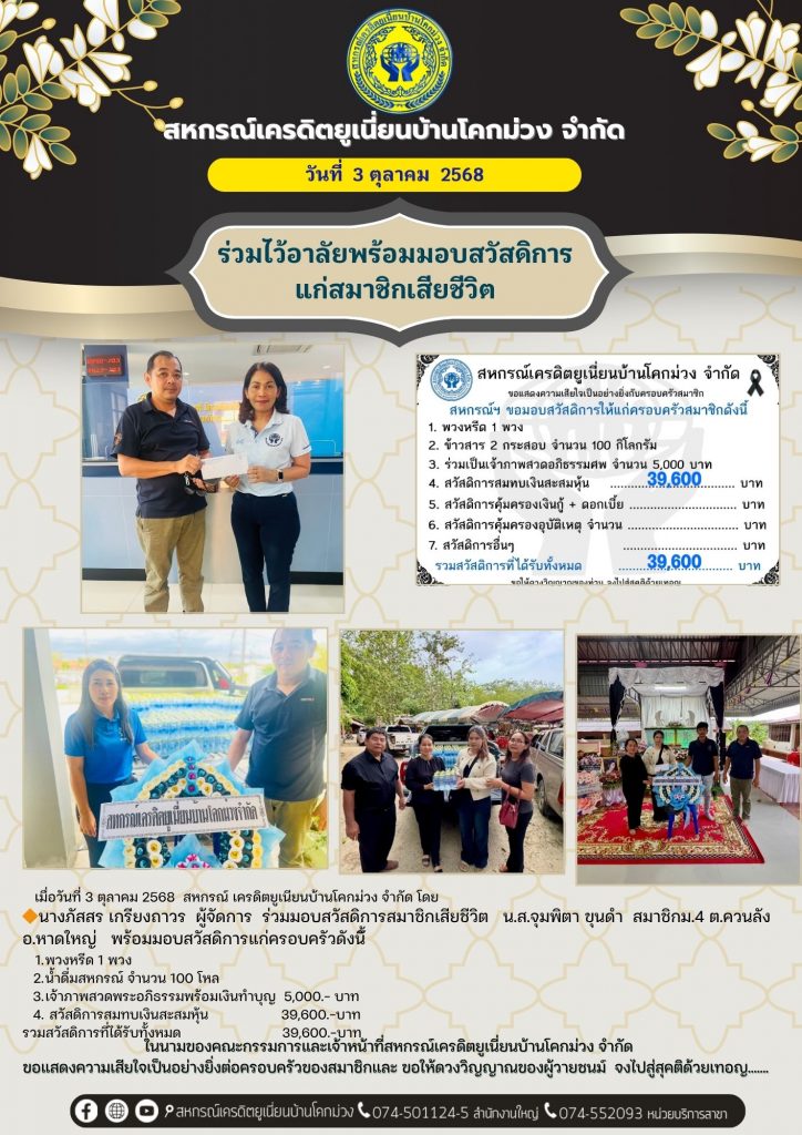 มอบสวัสดิการงานศพสมาชิกเสียชีวิต (นางจุมพิตา สุขดำ)