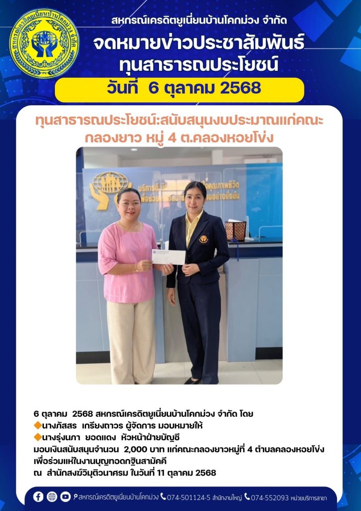 6 ตุลาคม 2568 สหกรณ์เครดิตยูเนี่ยนบ้านโคกม่วง จำกัด โดย