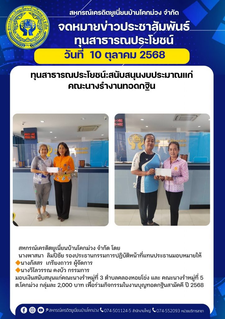 ทุนสาธารณะประโยชน์:สนับสนุนงบประมาณแก่คณะนางรำงานทอดกฐิน