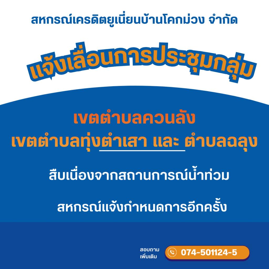 ประกาศ เลื่อนประชุมกลุ่ม เขตตำบลควนลัง / ตำบลทุ่งตำเสา ตำบลฉลุง