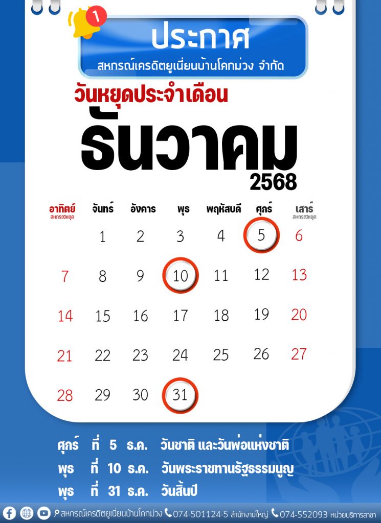 หยุดเสาร์ -อาทิตย์ และวันหยุดนักขัตฤกษ์