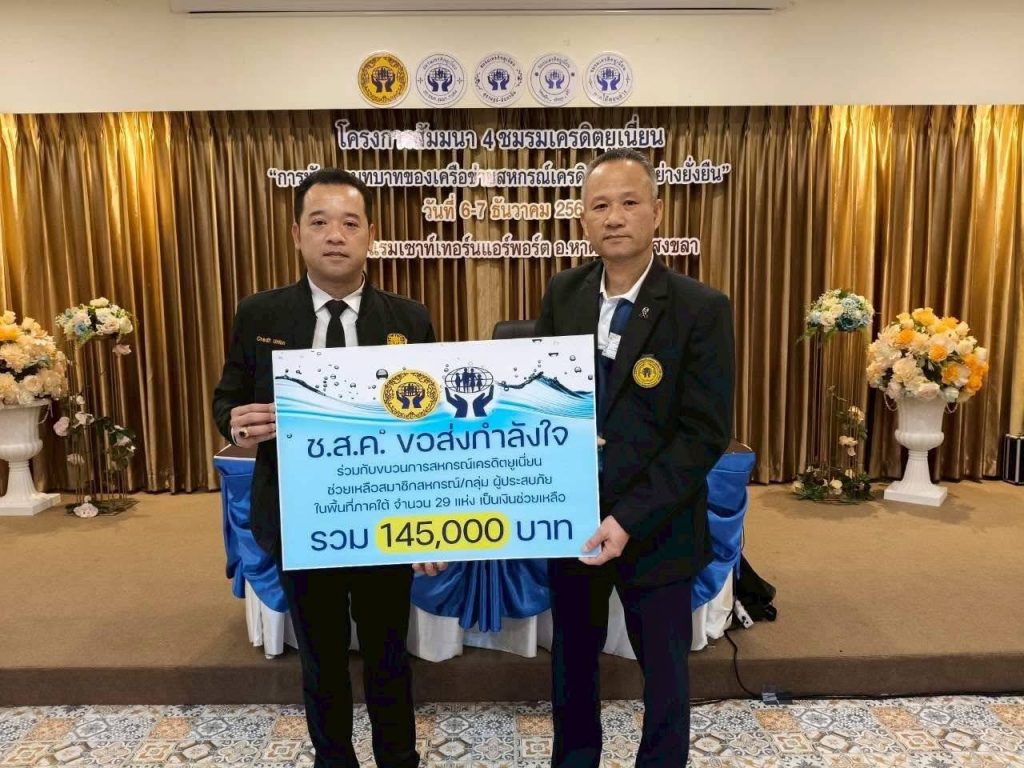 สหกรณ์ฯ ขอขอบคุณ สำหรับกำลังใจจากขบวนการสหกรณ์เครดิตยูเนี่ยนที่ช่วยเหลือสมาชิกสหกรณ์/กลุ่ม ผู้ประสบภัย ในพื้นที่ภาคใต้ จำนวน 29 แห่ง มา ณ โอกาสนี้