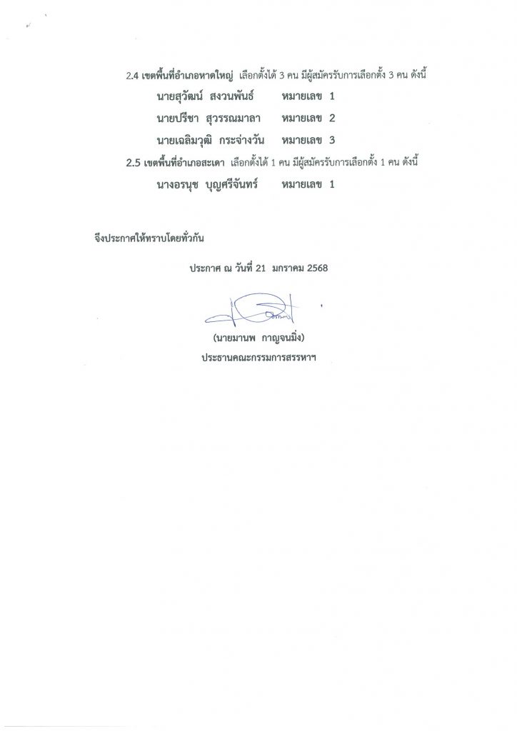 บัดนี้ คณะกรรมการสรรหาฯ ได้พิจารณาและตรวจสอบคุณสมบัติและลักษณะต้องห้ามตามข้อบังคับของสหกรณ์ฯ และระเบียบของผู้สมัครแล้ว จึงประกาศรายชื่อผู้มีสิทธิสมัครเข้ารับการเลือกตั้งกรรมการดำเนินการสหกรณ์ตามเขตพื้นที่ พร้อมกำหนดหมายเลขประจำตัวผู้สมัคร ตามรายละเอียดที่แนบ