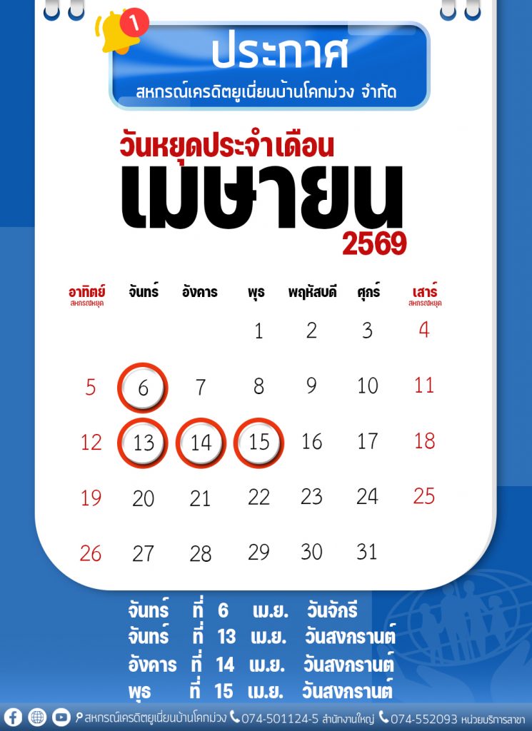 วันอังคารที่ 14 เมษายน 69 วันสงกรานต์